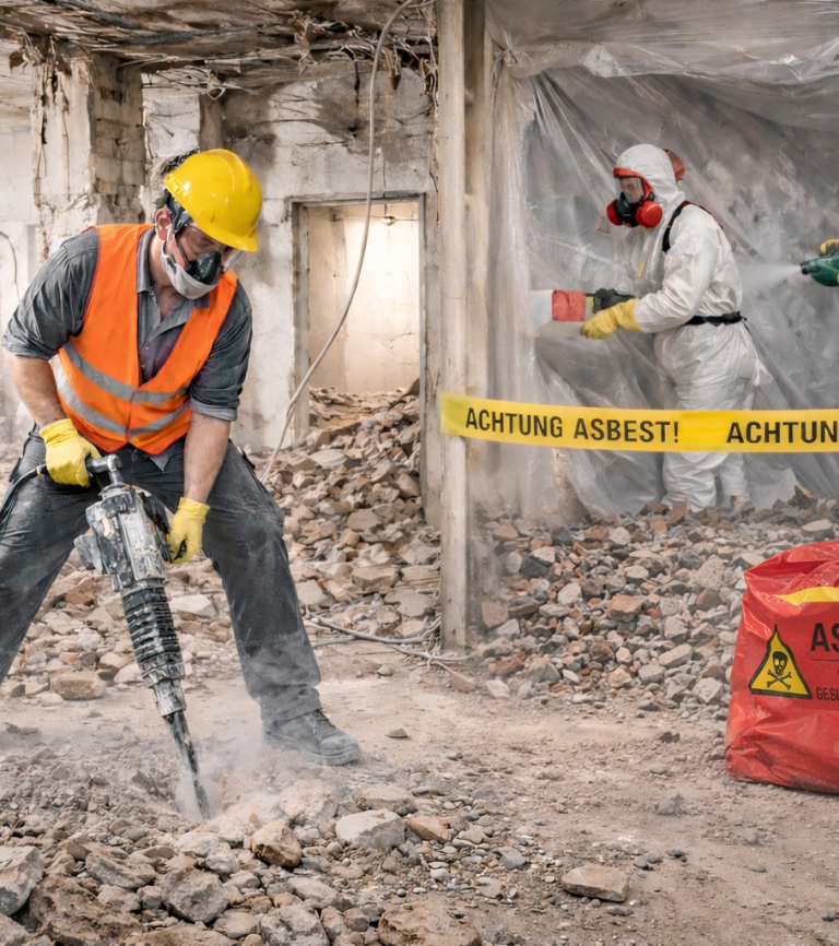 - Fachgerechte Entfernung und Entsorgung von Schad- und Gefahrstoffen (z.B. Asbest, KMF, Blei, Schimmel etc.) aus Bestandsgebäuden.